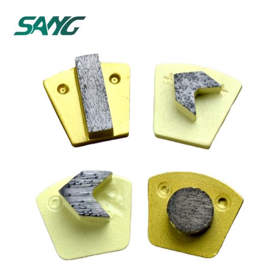 nous avons un segment de meulage rond, un tampon de meulage de sol en flèche, un type standard et un PCD pour votre choix.